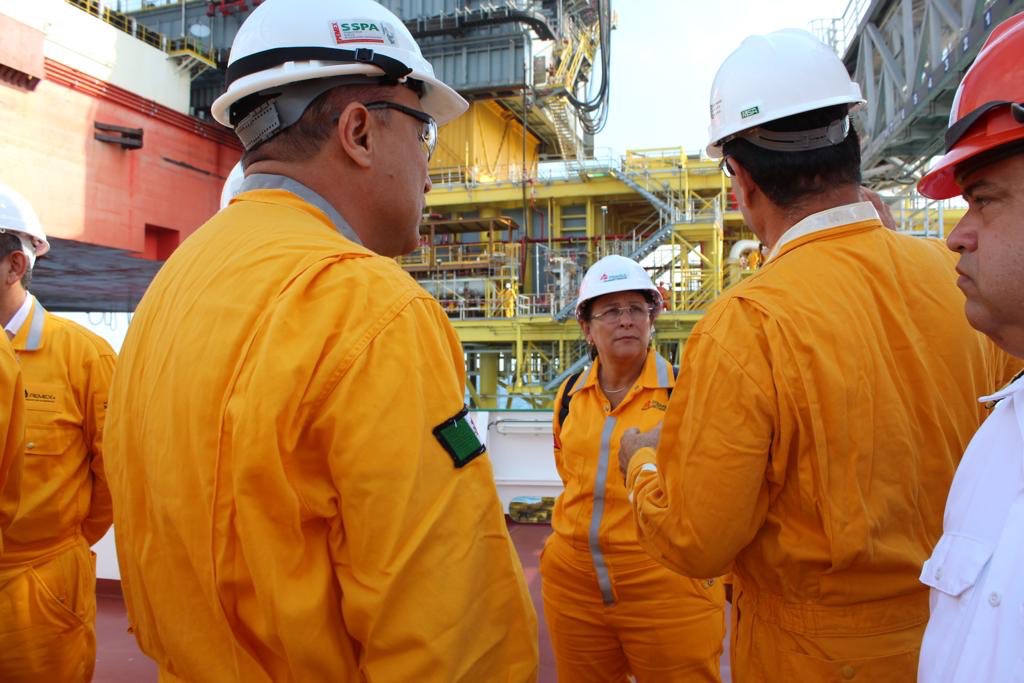 Desde el control de mando de perforación, a 72 metros de lecho marino, el Mandatario dijo que toda la inversión se realiza en tierra y en aguas someras, lo que permite bajar los costos de producción.