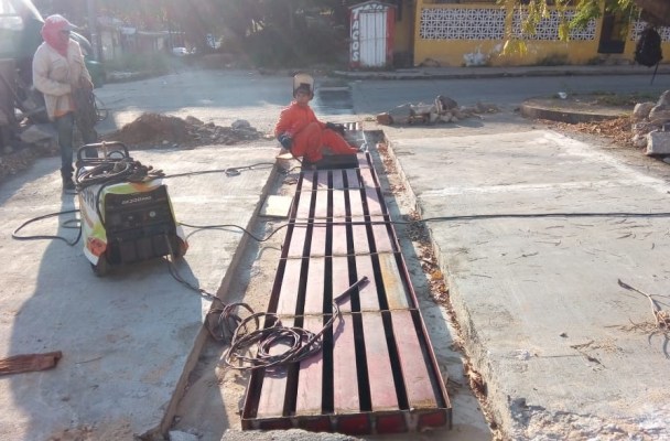 El encargado del Taller de Mantenimiento y Soldadura, José Chávez Toledo, informó que personal de esta dependencia trabaja en la fabricación de una trinchera en la Av. Juan Escutia y Aldama, la cual presentaba gran deterioro, por ello fue necesario el cambio total de la misma.