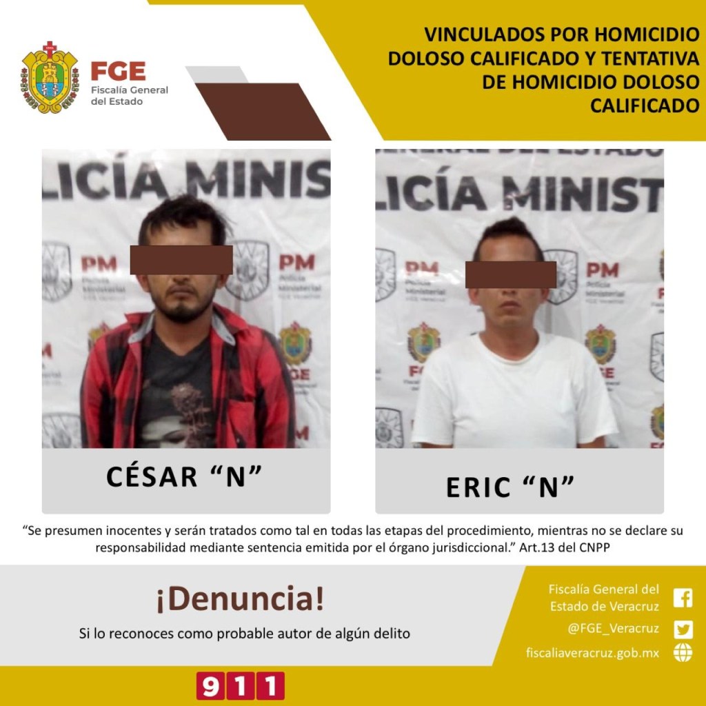 La Fiscalía Regional Zona Sur Coatzacoalcos logró la vinculación de César «N» y Eric «N», por los probables delitos de, homicidio doloso calificado y tentativa de homicidio doloso calificado.