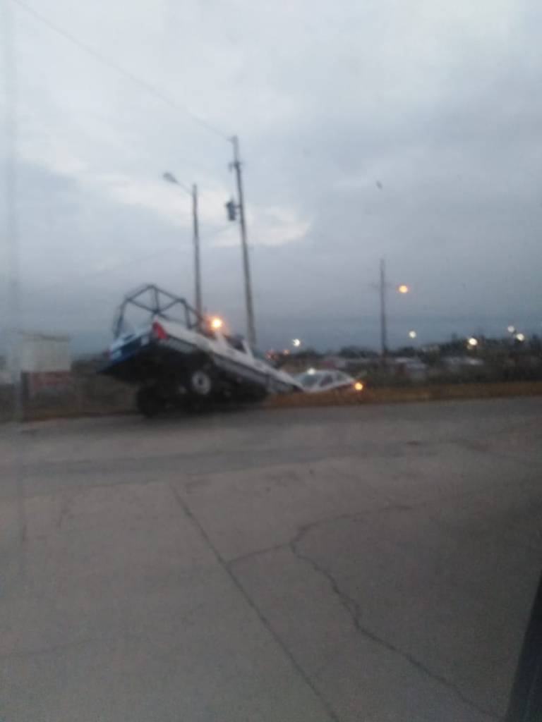 Oficiales de Seguridad Pública Estatal sufrieron esta madrugada un accidente vial sobre la avenida Abraham Zabludosvsky luego que el conductor de la unidad se quedara dormido y se salieran del camino con todo y patrulla.