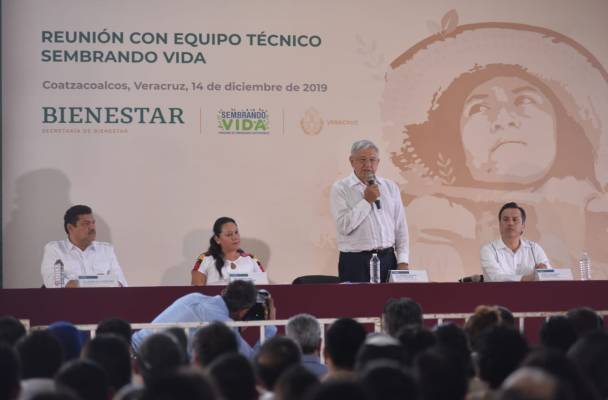 El presidente del país se encuentra en el municipio de Coatzacoalcos; se reunió con el equipo técnico del programa federal Sembrando Vida de la Secretaría del Bienestar.