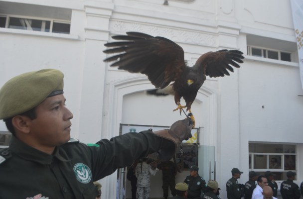 La Fuerza Civil de Veracruz presentó este pasado viernes a su comando de cetrería, el arte de caza mediante aves rapaces que son controladoras de plagas.