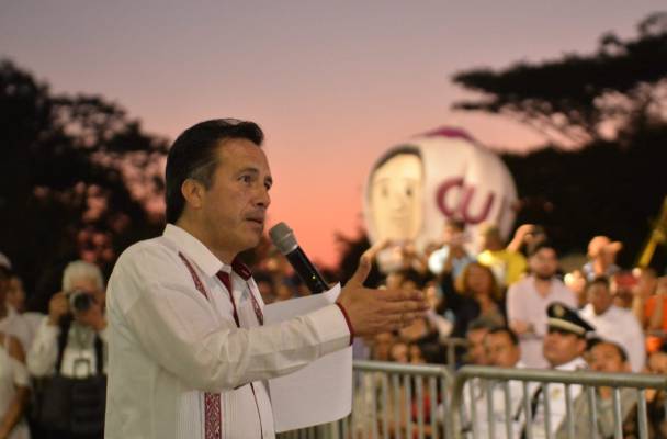 Otro Globo de papel china fue dedicado al mandatario estatal de Veracruz, al Gobernador Cuitláhuac García.