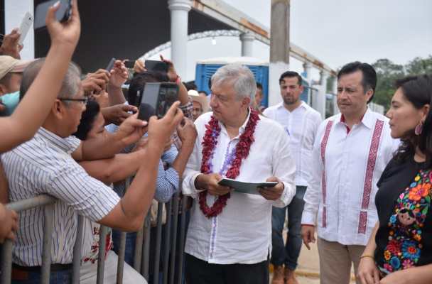 En su visita al ejido San Carlos, el presidente de la República Andrés Manuel López Obrador y el gobernador Cuitláhuac García Jiménez se comprometieron a reconstruir con concreto hidráulico la carretera que va de Hidalgotitlán a Minatitlán.