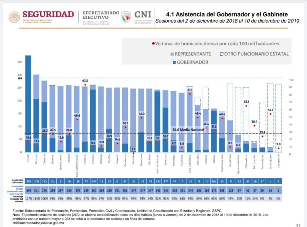 De igual forma, el Gobernador destaca en el sexto puesto tocante a la asistencia a las mesas de Coordinación Estatal.