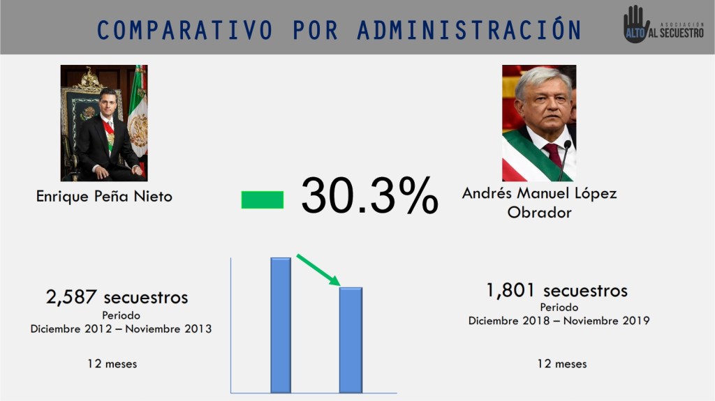 «Eso sigue siendo preocupante porque no conservamos la tendencia a la baja; al contrario, repuntó el delito de secuestro si lo comparamos con el mismo periodo del año pasado», lamentó la presidenta de la referida organización, Isabel Miranda de Wallace.
