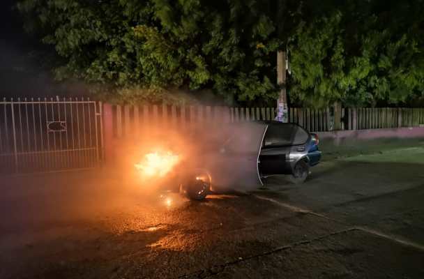 Incendian auto y colocan una narco manta en Las Choapas