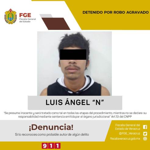 A Luis Ángel “N” se le finca responsabilidad penal en la comisión de hechos ocurridos en el mes de enero del año en curso, en la colonia Nueva Mina Norte en la ciudad de Minatitlán, cuando el hoy detenido ingresó a una sucursal de la cadena comercial Oxxo y amagó a los empleados de la citada tienda con arma de fuego para apoderarse de la cantidad de un mil quinientos noventa y siete, así como de despojar a un cliente de sus pertenencias.