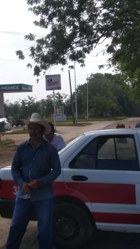 Los manifestantes, en su mayoría taxistas, aseguran que son varios los volteos que diariamente desde la madrugada están acarreando el material pétreo, lo sustraen de un predio en Tatahuicapan.