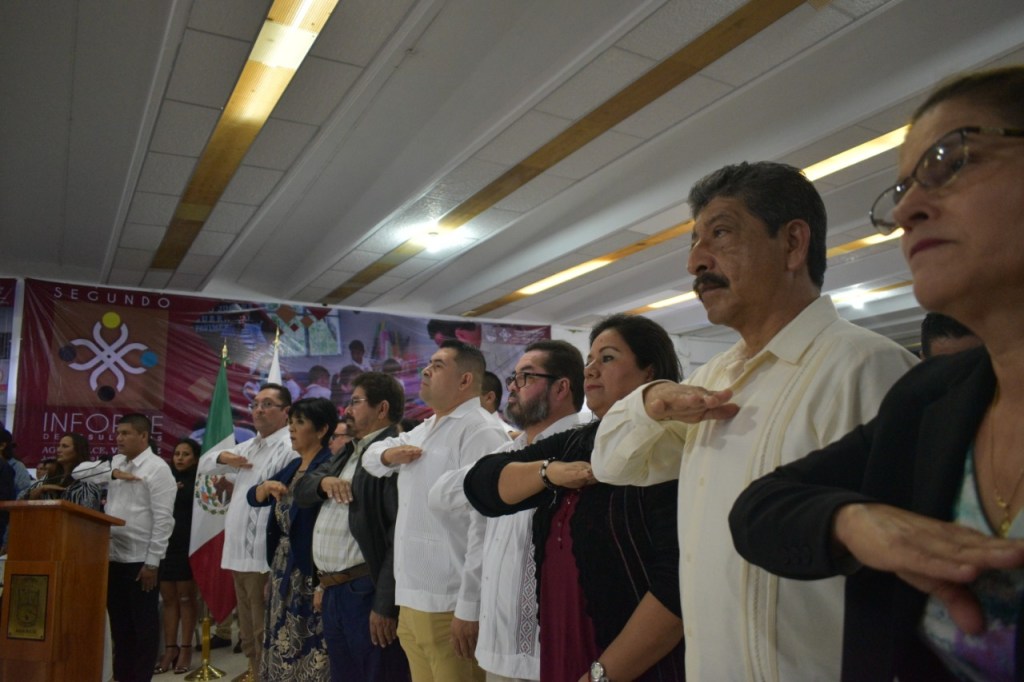 Ante un escenario abarrotado, con la presencia de funcionarios de los tres órdenes de gobierno, académicos, empresarios, autoridades religiosas, militares y ciudadanía en general, el alcalde Sergio Guzmán Ricárdez rindió de manera exitosa su segundo informe de resultados.