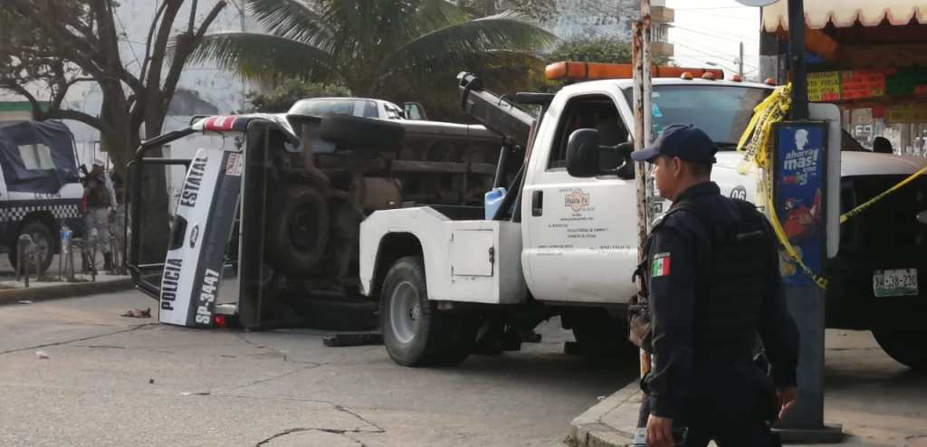 En las vísperas de la entrada del nuevo año, en el último día del 2019, se registró un accidente en las avenidas de Guerrero con Juárez que terminó en la volcadura de una patrulla de Seguridad Pública Estatal.
