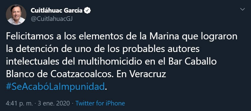 Detienen a líder criminal ligado a la masacre del Caballo Blanco