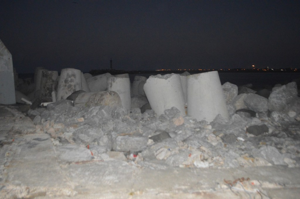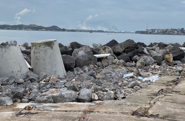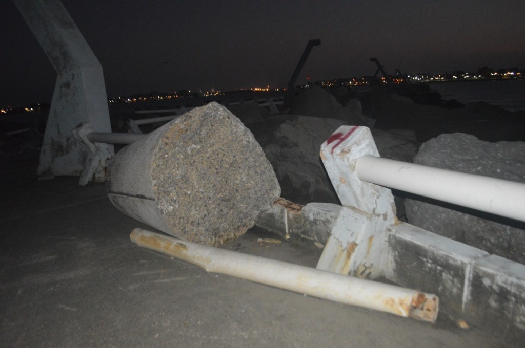 A lo largo de los 900 metros del Paseo de las Escolleras también hay palizada, basura, escombros y piedras gigantes removidas por la grúa, tanto el pavimento como el sistema de iluminación se encuentra severamente dañado.