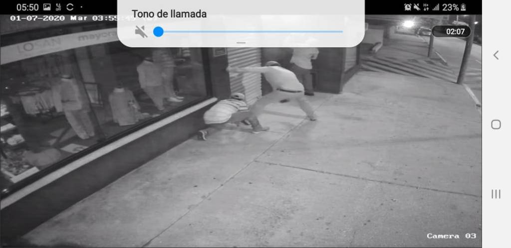 En el dispositivo electrónico quedó grabado el rostro de los tres delincuentes al momento de querer arrancar la cortina de acero en el negocio Ropa Moderna.