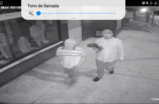 De acuerdo a la grabación, los ladrones llegaron a la negociación a las 3:55 de la mañana de este martes.