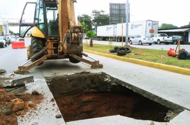 Se utiliza en las maniobras maquinaria pesada para encontrar las causas que originaron el nacimiento de este socavón, a la altura de la colonia «Las Delicias»