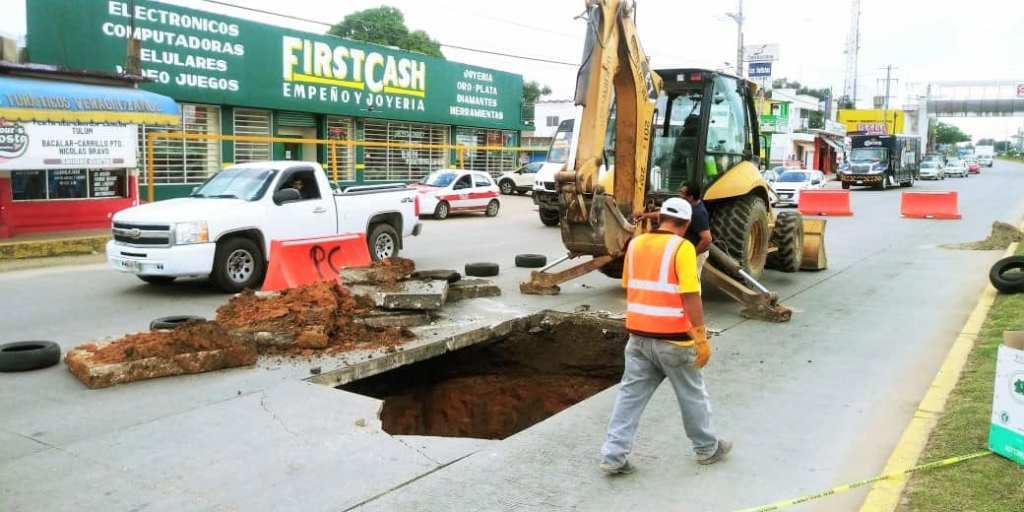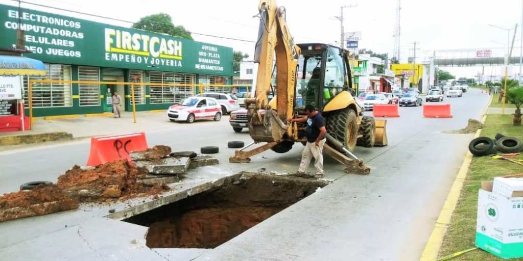 Por instrucciones del alcalde Don Nicolás Reyes Álvarez, el personal del departamento de Obras Públicas Municipales, trabaja con la premura que el caso requiere en el sector donde se formó un gran socavón sobre el Boulevard Institutos Tecnológicos, para de esta manera evitar algún accidente.