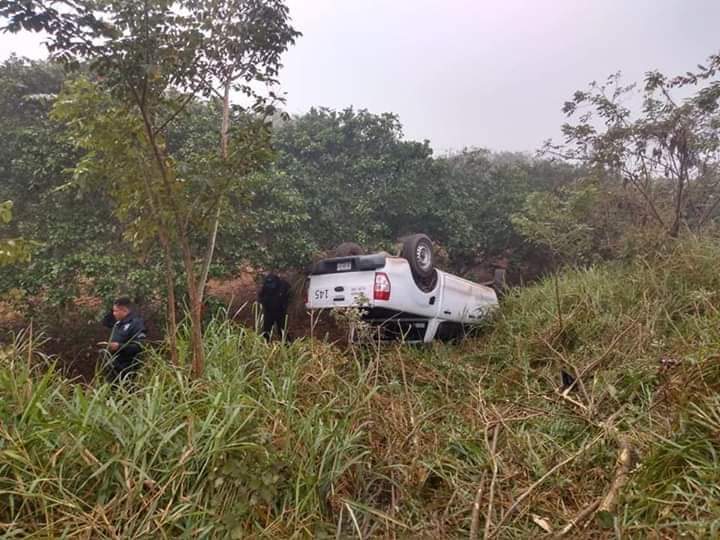 De acuerdo al conductor el mal estado de esta carretera y la neblina que había, fueron las causas de que perdiera el control de la camioneta color Blanca de batea con placas de circulación XX-28-917 del Estado ,rotulada con el logotipo de Comité de Sanidad del Estado de Veracruz.