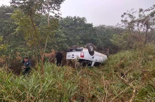 Ignacio «N» conductor de una unidad de Sanidad del Estado , resultó lesionado luego de que volcara mientras conducía.