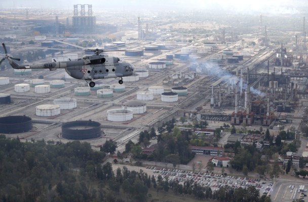 Helicópteros y aviones de la Secretaría de la Defensa sobrevuelan los ductos e instalaciones de Pemex como parte de la lucha contra el robo de hidrocarburos.