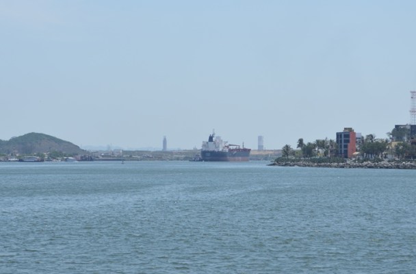 Momentos en que el buque tanque está arribando a los muelles de Pajaritos.