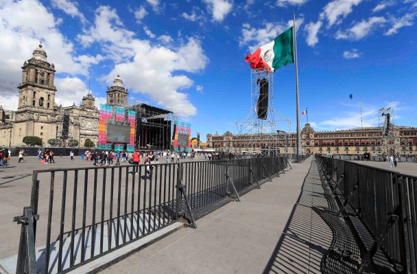 En el Zócalo capitalino, Palacio Nacional y la calle de Corregidora.