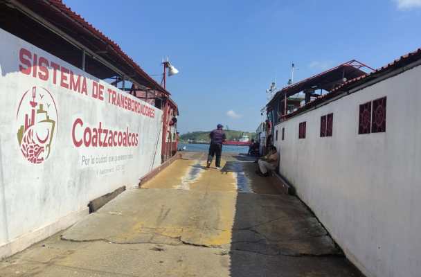 Por otro lado, en el muelle de Coatzacoalcos se observa atracado el otro transbordador, “Grijalva”, el cual se encuentra fuera de servicio desde el año pasado.