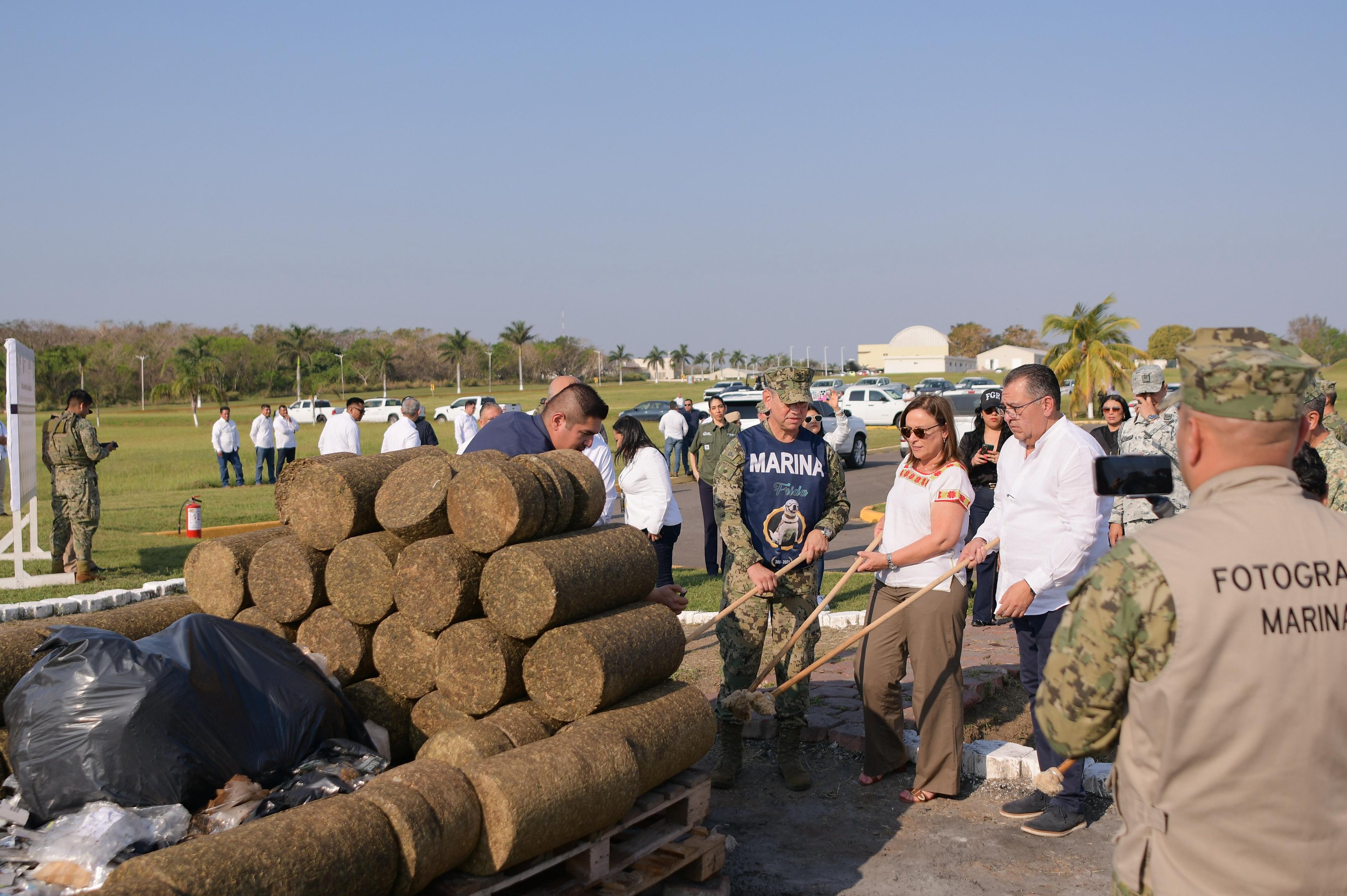 En las instalaciones de la base aeronaval de Las Bajadas, la Secretaría de Marina en coordinación con la Fiscalía General de la República incineraron 578 kilogramos de diversos narcóticos teniendo como invitados a la Gobernadora de Veracruz, Rocío Nahle García y al Secretario de Gobierno, Ricardo Ahued Bardahuil.
