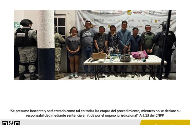 La Fiscalía General del Estado informa que, Fiscales, Peritos y Policías Ministeriales adscritos a la Fiscalía Regional Coatzacoalcos, en coordinación con la Secretaría de la Defensa Nacional, Secretaría de Marina, Guardia Nacional y la Secretaría de Seguridad Pública Estatal, detuvieron en flagrancia a Emanuel N”, Pedro “N”, Ángel “N”, Omar “N”, Adolfo “N”, Andrick Uriel “N”, Yohana “N” y un adolescente menor de edad de identidad resguerdada, como probables responsables del delito contra la salud.