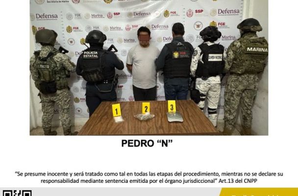 La Fiscalía General del Estado informa que, Fiscales, Peritos y Policías Ministeriales adscritos a la Fiscalía Regional Coatzacoalcos, en coordinación con la Secretaría de la Defensa Nacional, Secretaría de Marina, Guardia Nacional y la Secretaría de Seguridad Pública Estatal, detuvieron en flagrancia a Pedro “N”.