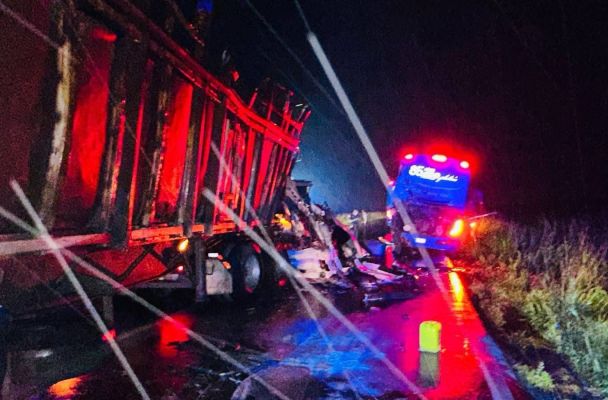 POR FORTUNA NO HUBO MUERTOS LUEGO QUE ADO y un tráiler se impactan en la carretera Coatzacoalcos-Minatitlán, tramo Las Matas.