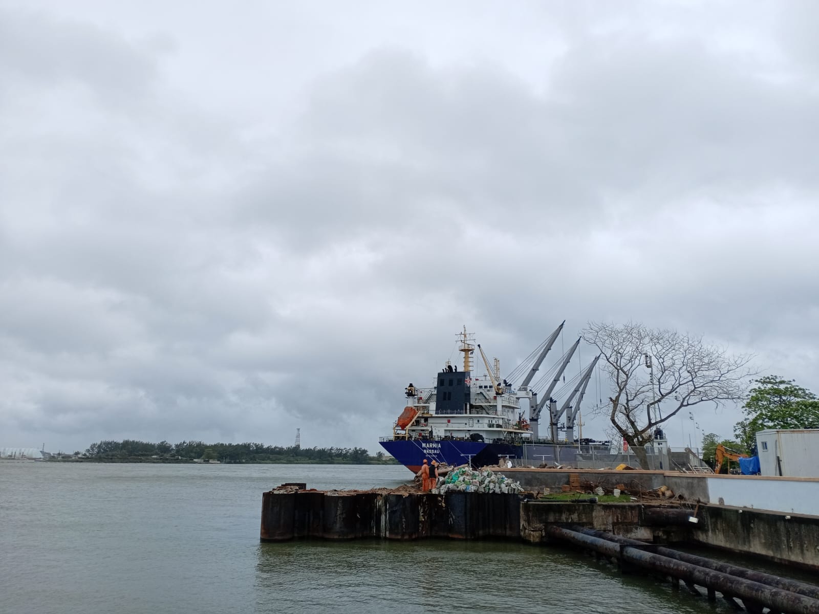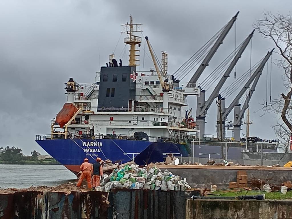 Esta mañana, los estibadores hicieron las maniobras para cargar el barco granelero «Warmia», con banderas de Bahamas, que navegará desde el Puerto de Coatzacoalcos hacia Puerto Cortés – de la nación de Honduras- para llevar más de 33 mil toneladas de azúcar de la zafra 2024-2025.