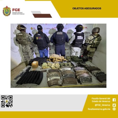 La Fiscalía General del Estado informa que, Fiscales, Peritos y Policías Ministeriales adscritos a la Fiscalía Regional Caotzacoalcos, en coordinación con la Secretaría de la Defensa Nacional, Secretaría de Marina, Guardia Nacional y la Secretaría de Seguridad Pública Estatal, llevaron a cabo un cateo autorizado por un juez, en la localidad de Almagres perteneciente a este municipio.