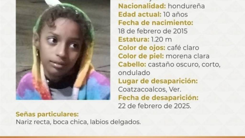 Junto a ella, también desapareció su hija, Victoria Jireh Matute Calix, de 10 años, quien mide 1.20 metros, tiene tez morena clara, ojos café claro y cabello corto, ondulado y castaño oscuro. Como señas particulares, tiene la nariz recta, boca pequeña y labios delgados.