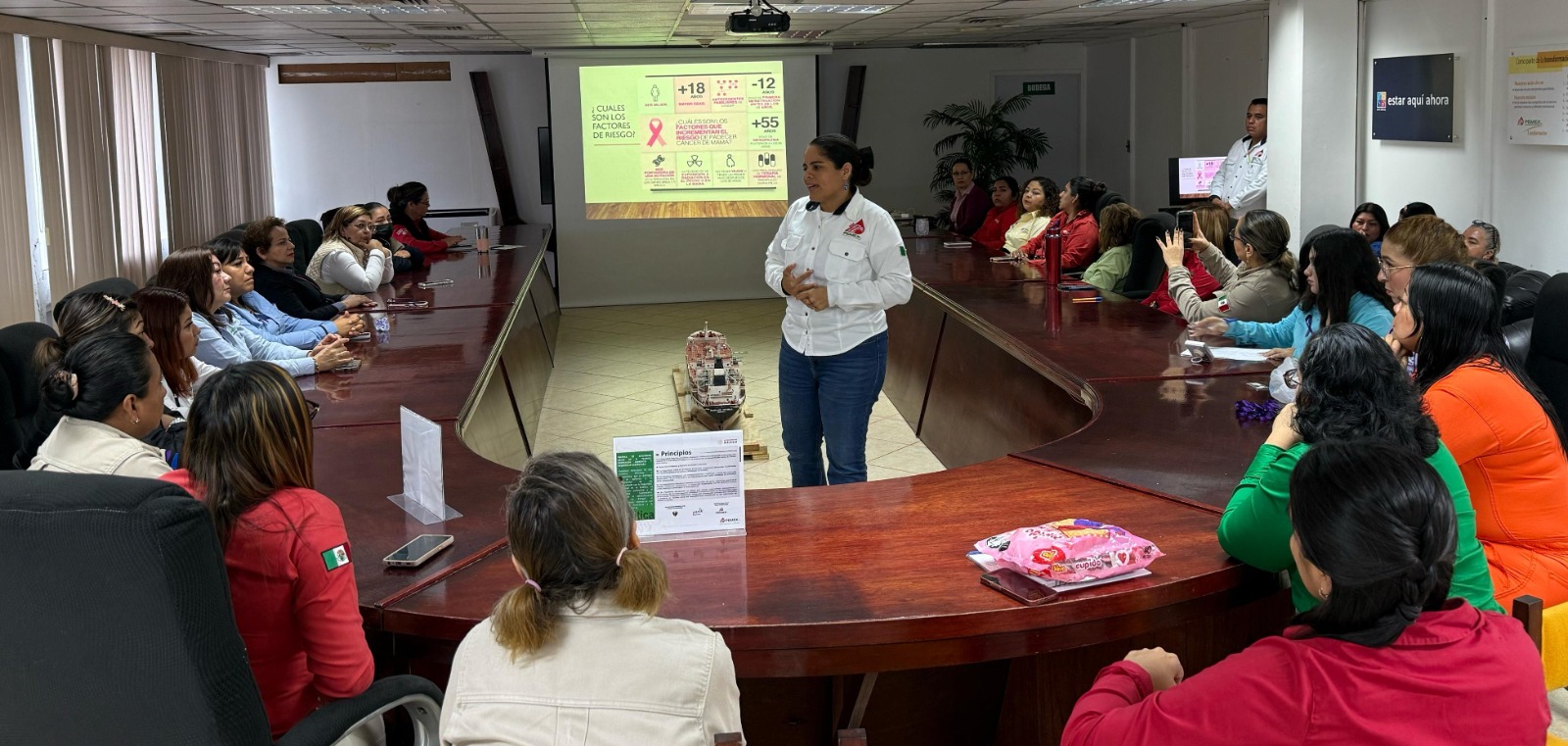 En la Terminal de Almacenamiento y Servicios Portuarios (TASP) Pajaritos, se impartieron las pláticas “Detección oportuna de cáncer de mama” y “8 de marzo para todas las mujeres y niñas: Derechos, igualdad y empoderamiento”.