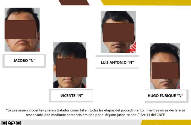 La Fiscalía General del Estado, a través de la Unidad Especializada en Combate al Secuestro, realizó imputación en contra de Jacobo “N”, Vicente “N”, Luis Antonio “N” y Hugo Enrique “N”, como probables responsables del delito de secuestro, cometido en agravio de las víctimas J.R.F., y U.H.G.