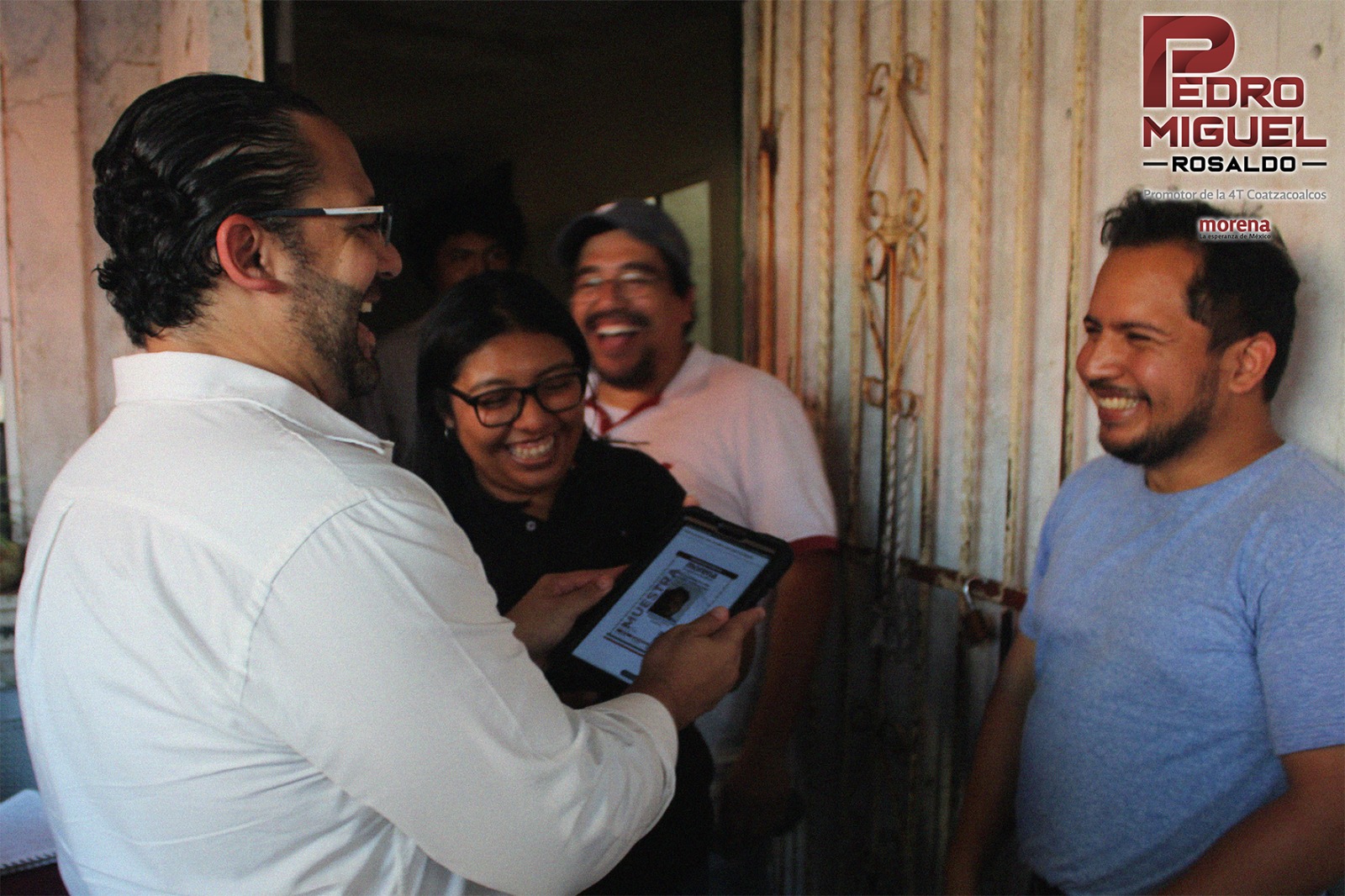 Pedro Miguel Risaldo Garcia, Promotor de la 4T en Coatzacoalcos, participó con militantes y simpatizantes del Movimiento de Regeneración Nacional en el programa de afiliación y reafiliacion en la colonia Ciudad Olmeca.