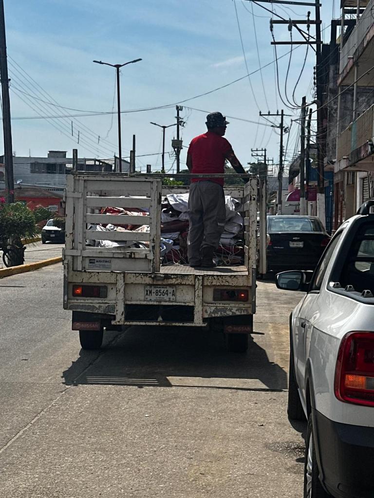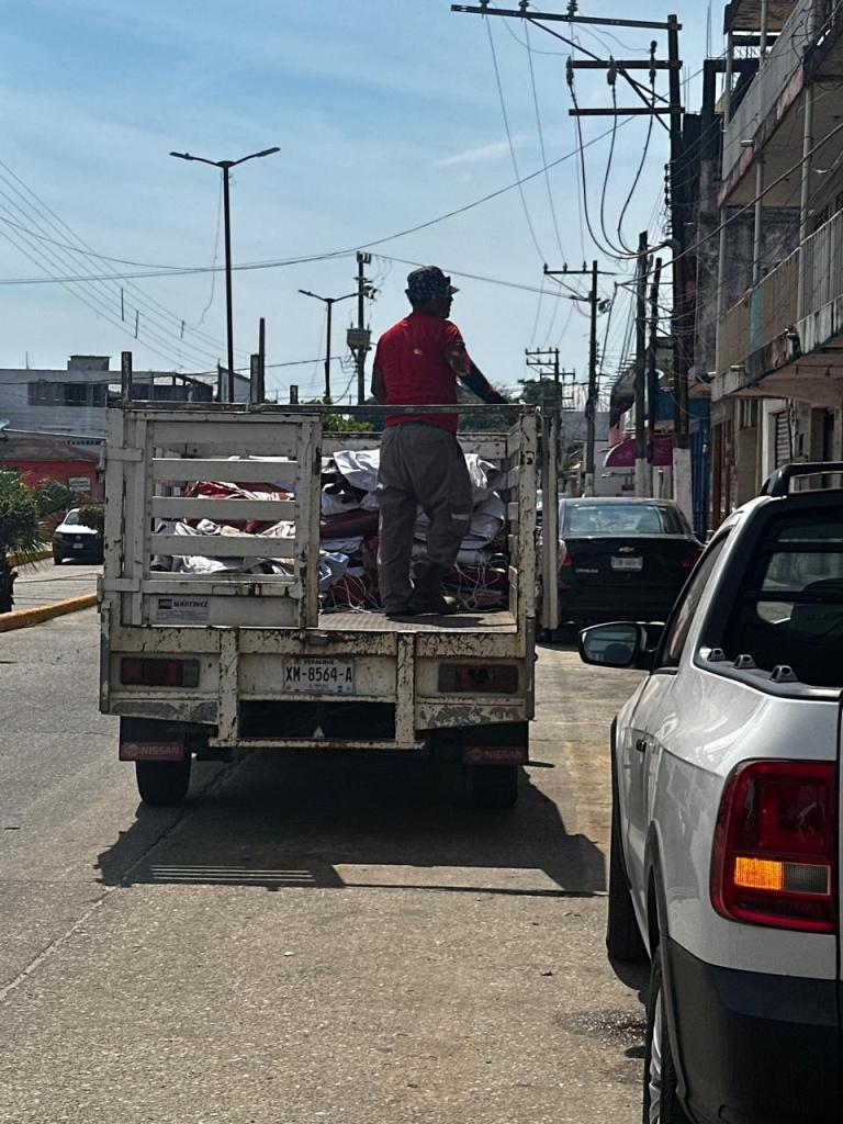 Agua Dulce, Ver. – Comerciantes del municipio de Agua Dulce denunciaron este lunes que trabajadores del Ayuntamiento, bajo las órdenes del alcalde Noé Castillo Olvera, retiraron del Palacio Municipal alrededor de 50 lonas de vinil con propaganda del candidato de Morena a la alcaldía, Ángel Delgado, para trasladarlas en una camioneta de obra pública.