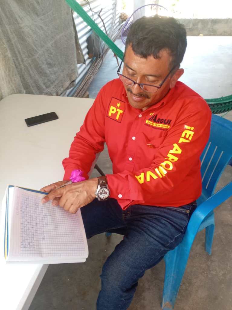 Agustín González Córdova, candidato del PT, firma carta para construir calle si resulta presidente electo este 1 de junio