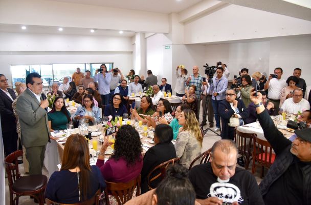 En este encuentro, organizado por la Coordinación de Comunicación Social, a cargo del periodista Esaú Valencia Heredia, el legislador subrayó que la libertad de expresión es una parte fundamental de la vida pública del país y del estado, toda vez que no puede seguirse o guiarse en un solo sentido, “se requiere la voz crítica que nos dé su punto de vista”.