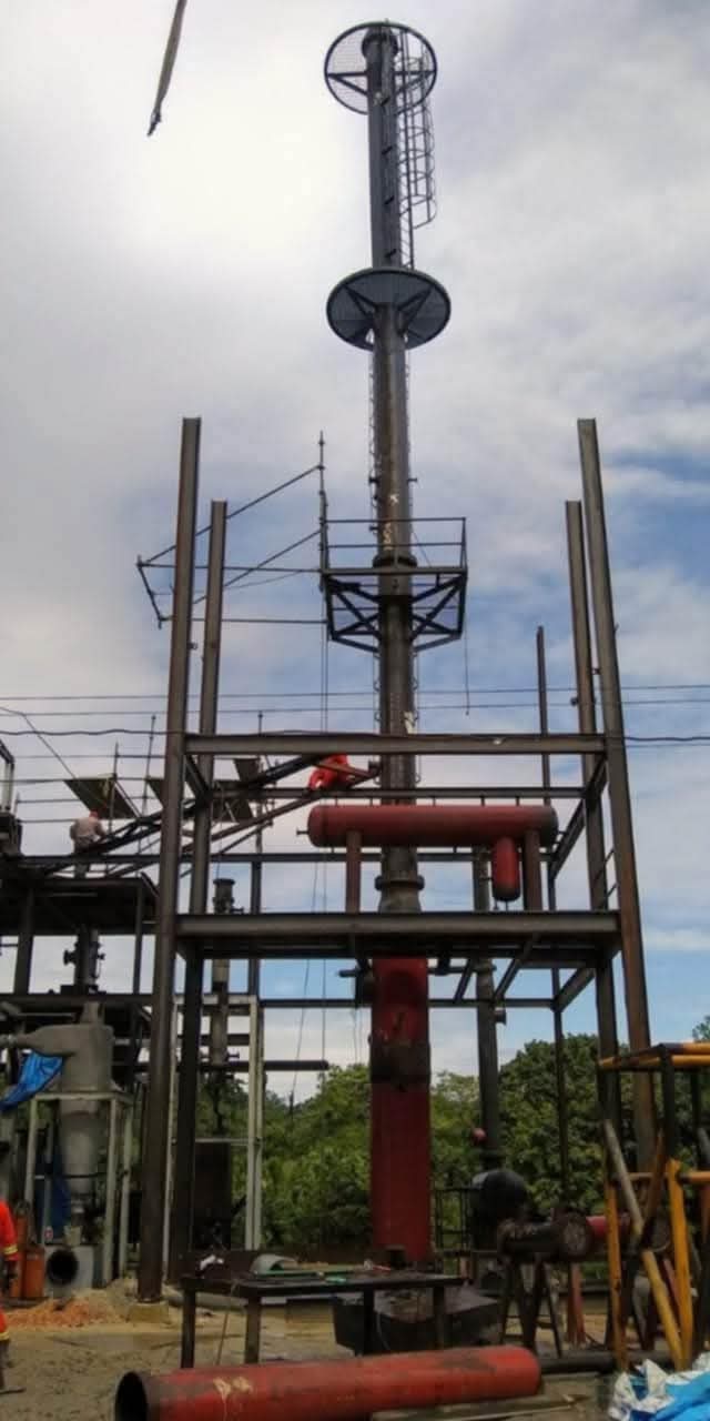 La minirrefinería está compuesta por una estructura metálica de tres pisos, con tubos casi semioxidados, reactores en la parte baja, media y alta, y un cuarto de control de máquinas para el proceso para la elaboración de aditivos de combustible.