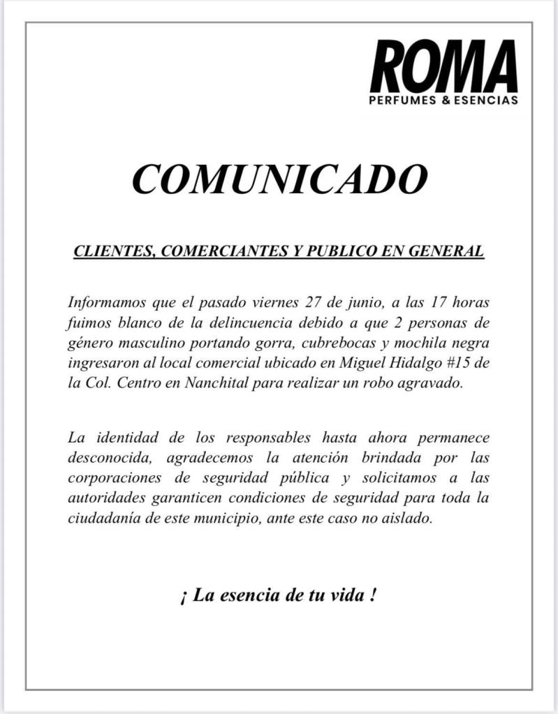 A pesar de los esfuerzos por establecer una Policía Municipal, la delincuencia organizada parece operar con impunidad, llevando al Grupo Roma a emitir un comunicado público exigiendo justicia tras ser víctima de un atraco.