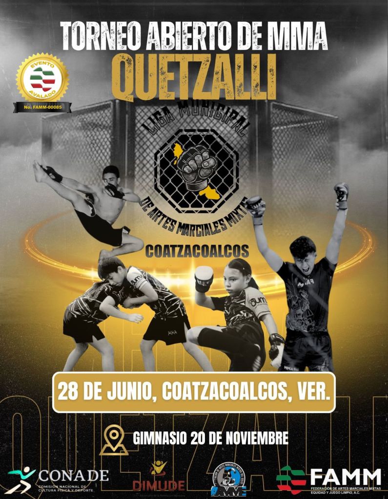 Coatzacoalcos, Ver. – El pasado sábado 28 de junio de 2025, la ciudad de Coatzacoalcos se convirtió en el epicentro de las Artes Marciales Mixtas (MMA) al ser sede del Primer Torneo Abierto Federado Copa Quetzalli 2025.
