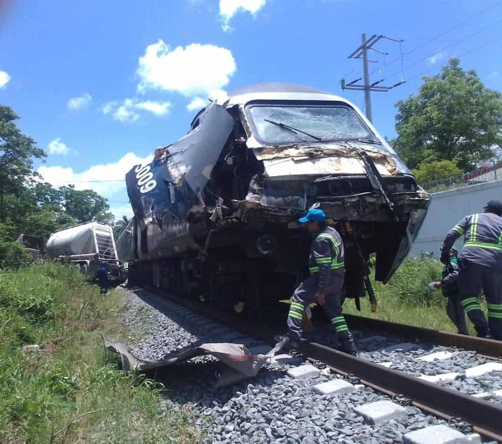 El tractocamión, según primeros reportes, intentó ganarle el paso a la locomotora en un cruce ferroviario sin barreras visibles. La falta de precaución del conductor culminó en una colisión que dejó severos daños en la estructura del tren. Por fortuna, no se reportaron heridos graves.