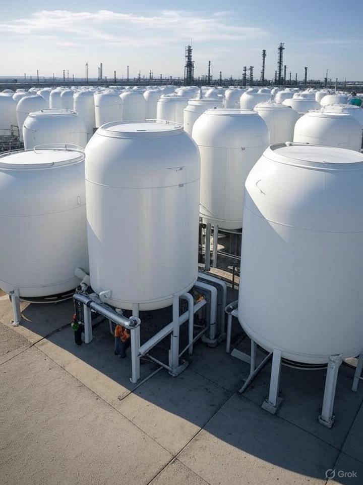 El diseño de la planta contempla un sistema de almacenamiento sofisticado con 15 silos tipo lápiz, cada uno con capacidad de 30 metros cúbicos, y 24 tanques FRAC TANK de 80 metros cúbicos cada uno.