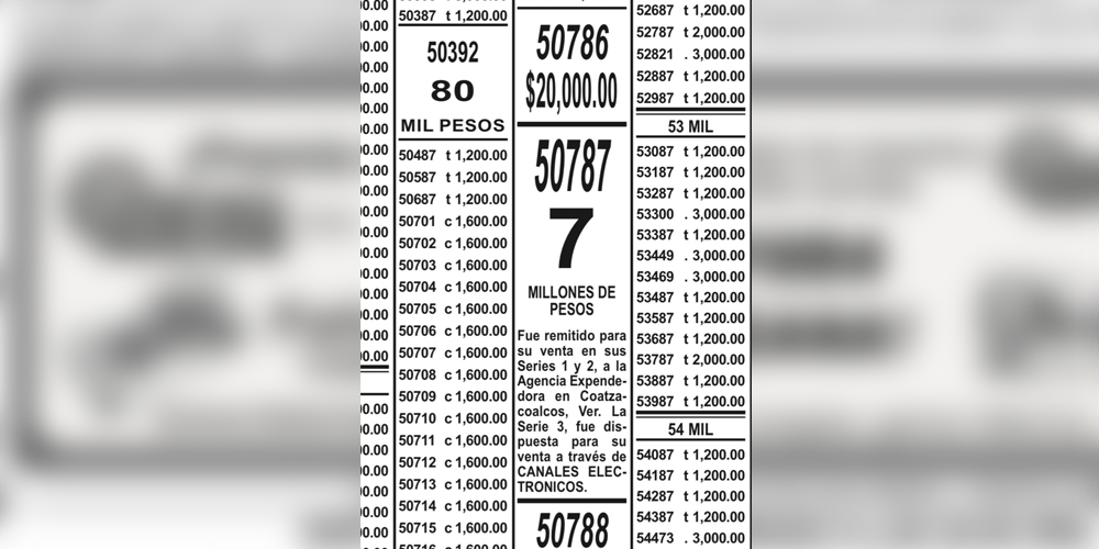 El boleto ganador del sorteo correspondió al número 50787 de la tercera serie, vendida en línea, mientras que las dos primeras series fueron adquiridas en una agencia local de Coatzacoalcos.