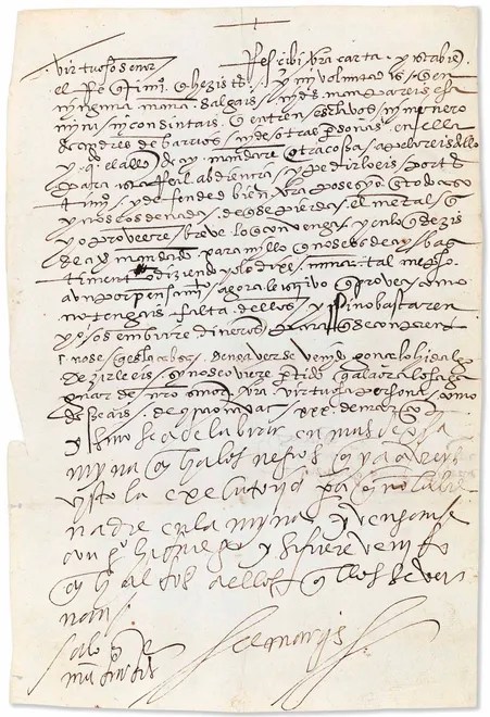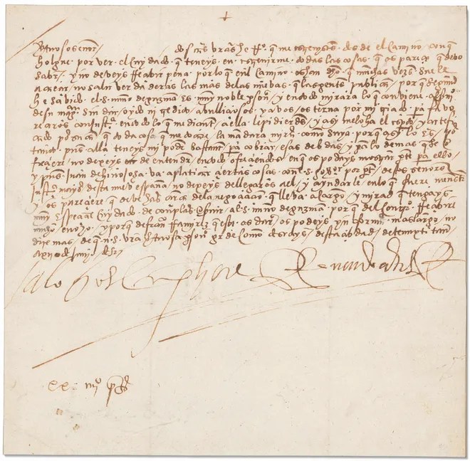 La carta del gran Conquistador español, probablemente dirigida al Rey, dice más o menos así: