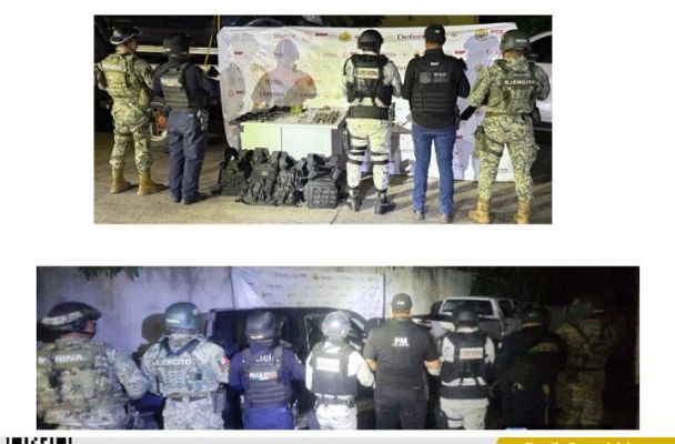 En dicho operativo se aseguraron vehículos, cinchos para manos, poncha llantas, permisos provisionales de circulación, casquillos balísticos, un fragmento de granda, chalecos antibalas, documentos diversos y una fornitura para arma de fuego.