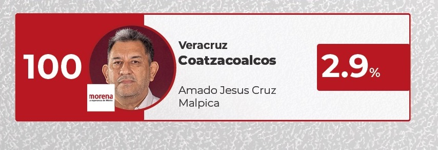- Laura Pérez Segura (Morena, San Pedro Tlaquepaque, Jalisco) con 43.5%.