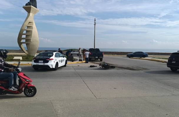 Un joven motociclista identificado como Freddy resultó lesionado luego de impactarse contra una camioneta, sobre el malecón costero, a la altura de la colonia Pensiones.